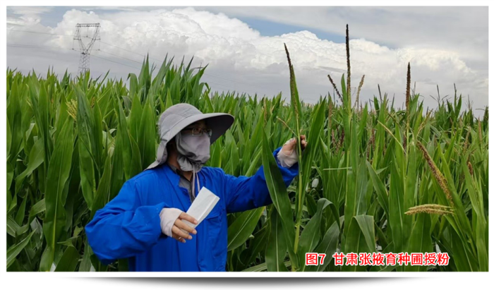 當(dāng)然,我們還會(huì)把這些新加倍DH系在張掖基地種植一份進(jìn)行套袋授粉。套袋授粉是我們每一個(gè)育種人員最熟悉不過的工作了,對(duì)于10萬(wàn)株的授粉任務(wù),我們需要培訓(xùn)更多技術(shù)的工人來(lái)幫助我們。在7月將近一個(gè)月的時(shí)間里,每天都在地里跟玉米在一塊,不斷的指導(dǎo)和培訓(xùn)工人授粉,授粉工作看似簡(jiǎn)單實(shí)則不易,授粉時(shí)間把控很重要,不易過早也不能太晚,授粉早了結(jié)不滿,授粉晚了沒有花粉了,還有就是授粉授雜的情況。在37℃高溫下,我們頭頂著烈日,揮灑著汗水,看著玉米材料一株株授粉結(jié)束,內(nèi)心還是充滿了無(wú)限的喜悅。