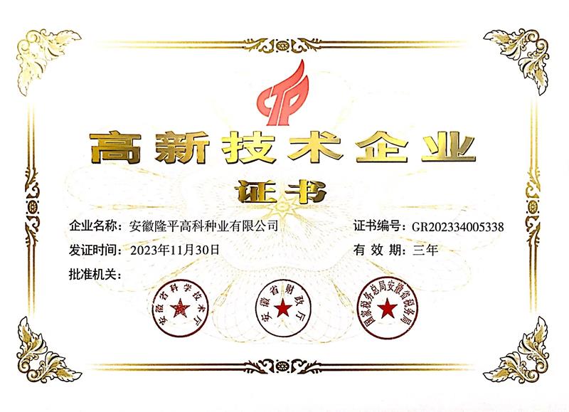 高新技術(shù)企業(yè)證書